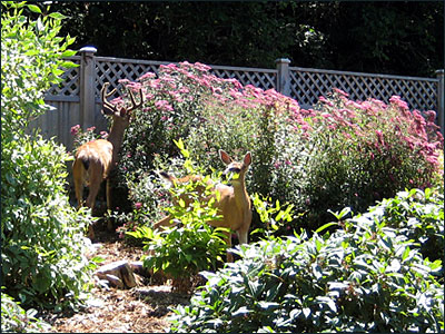 But hey, Charlotte, it's not the guy who pruned the bushes who did it wrong. It's the deer that sculpt them to their weird shape. Oh, well, nice sunny summer day--live and let live...